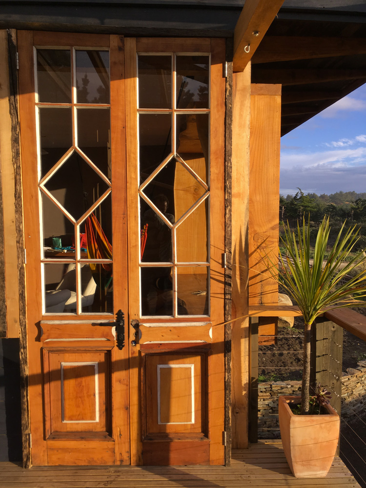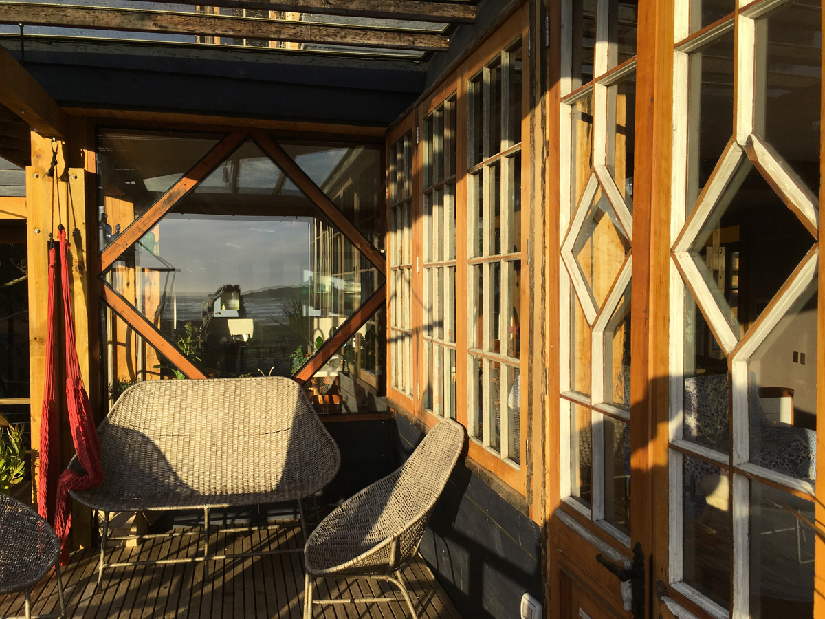 Proyectado como segunda etapa esta vivienda propia busca elevarse para lograr la vista a la playa de Punta de Lobos y liberar la planta noble para su uso como estacionamiento, taller y zona de juegos y reunión. Se emplaza perpendicular al horizonte para generar una terraza norte protegida de los vientos predominantes del sur. Para su construcción se utilizaron diversos materiales de demolición como puertas, ventanas y revestimientos reciclados. La distribución se diseña para optimizar el calor de la bosca, motivo por lo cual se ubican las piezas en un segundo piso. En cuanto a sus estrategias de emplazamiento la casa se cierra hacia el sur (frío), incorpora vistas encuadradas hacia el poniente (mar) y se abre lo máximo posible hacia el norte (sol y patio privado), cuidando generar espacios de intimidad en un condominio donde las casas de los vecinos y calle se encuentran próximas a la vivienda. La estructura de la casa se diseña mediante un sistema de palos enlazados donde grandes elementos de madera se ensamblan armando un gran esqueleto que luego se va completando con los cerramientos. Esto permite que la vivienda se apoye en solamente 10 pilares lo cual libera su uso para múltiples propósitos.